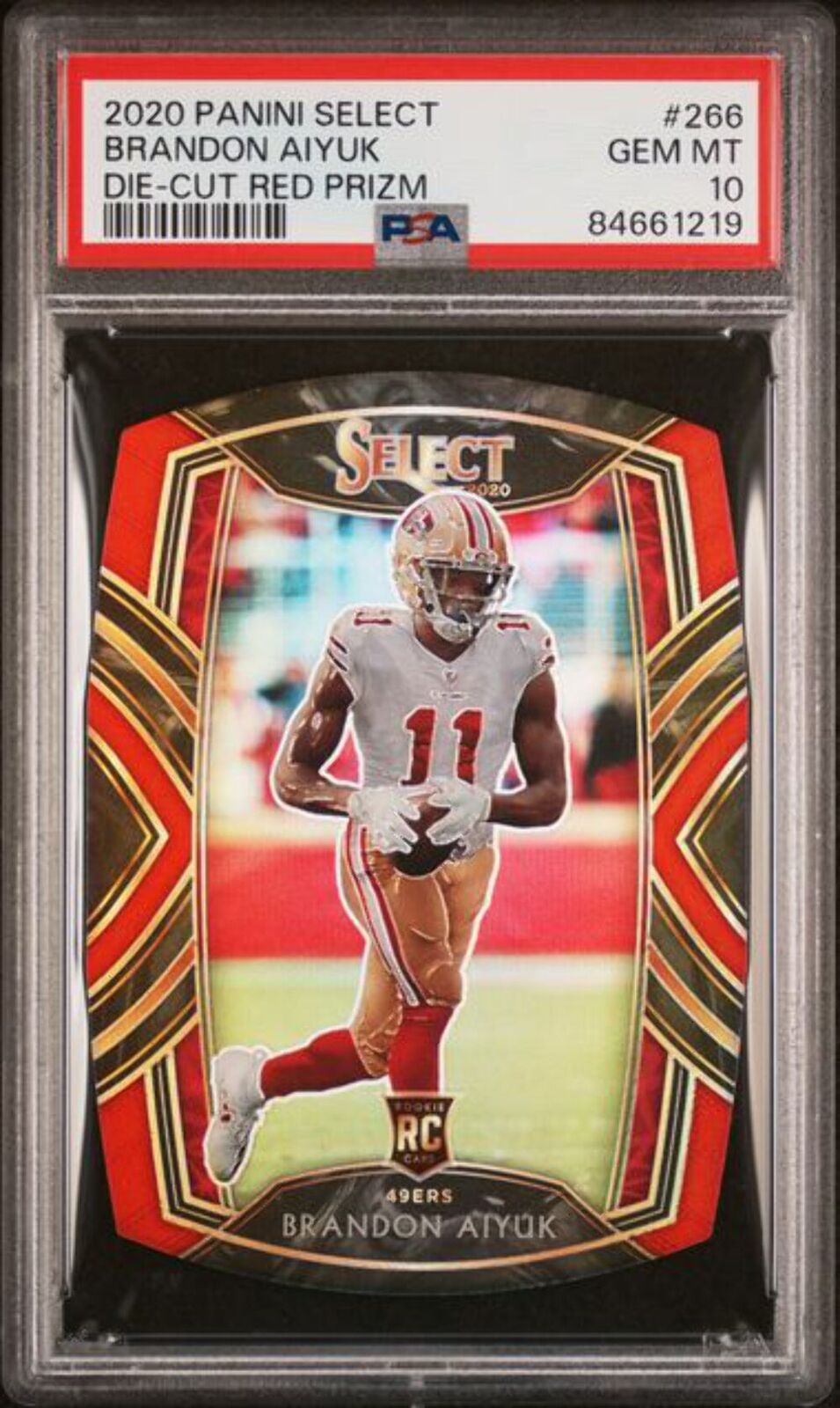 Graded 2020 Select Brandon Aiyuk #266 Die-Cut Red Prizm RC Football Card PSA 10